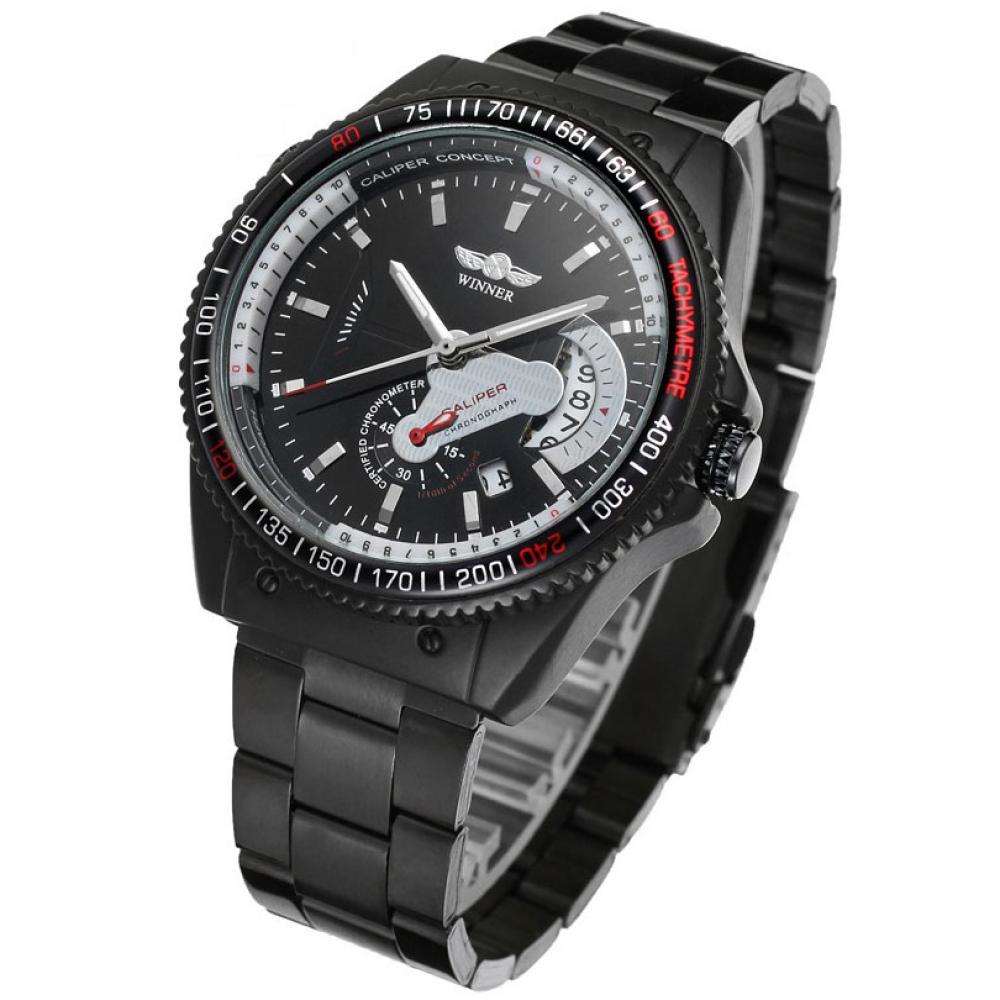The new luxury skeleton from Winner, black stainless steel bracelet, scratch-resistant, automatic + gift box